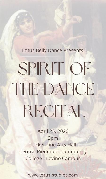 The time has come again! Join us as we celebrate the Spirit of the Dance at our annual belly dance recital! Featuring performances from students, teachers, and members of the belly dance community, we're coming together once again to showcase this amazing art form to the city, to share this love of dance with family and friends, and to have a wonderful time! This is a family friendly show.